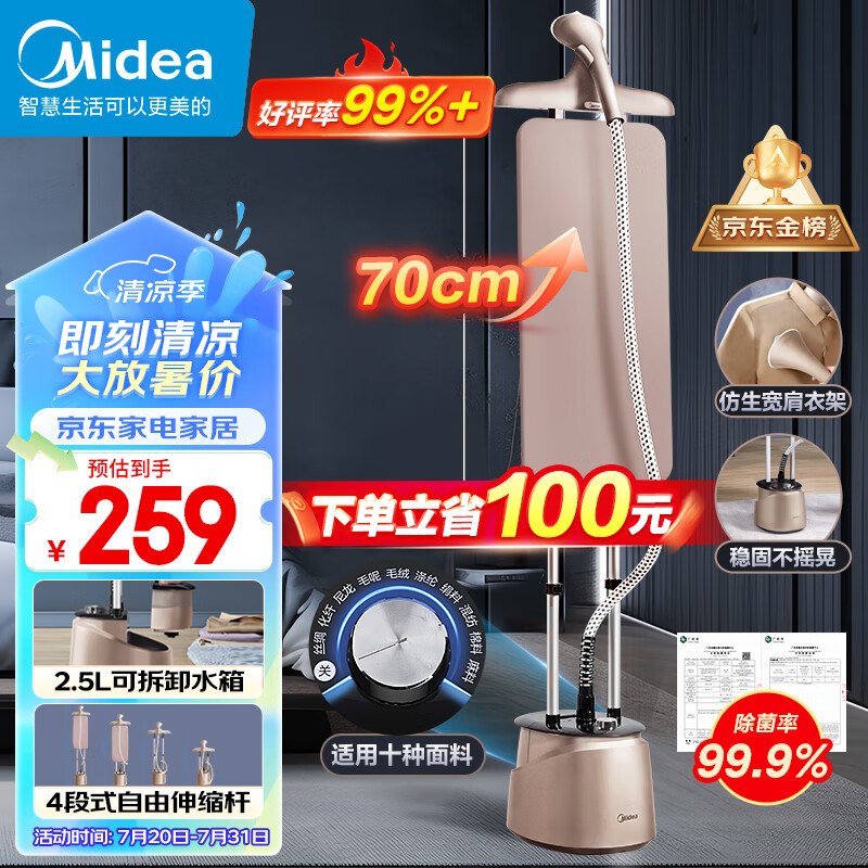 美的(Midea)【10档熨烫模式】挂烫机家用双杆手持熨烫机蒸汽电熨斗挂烫机2.5升大水箱YGD20P5价格:359.00元!
