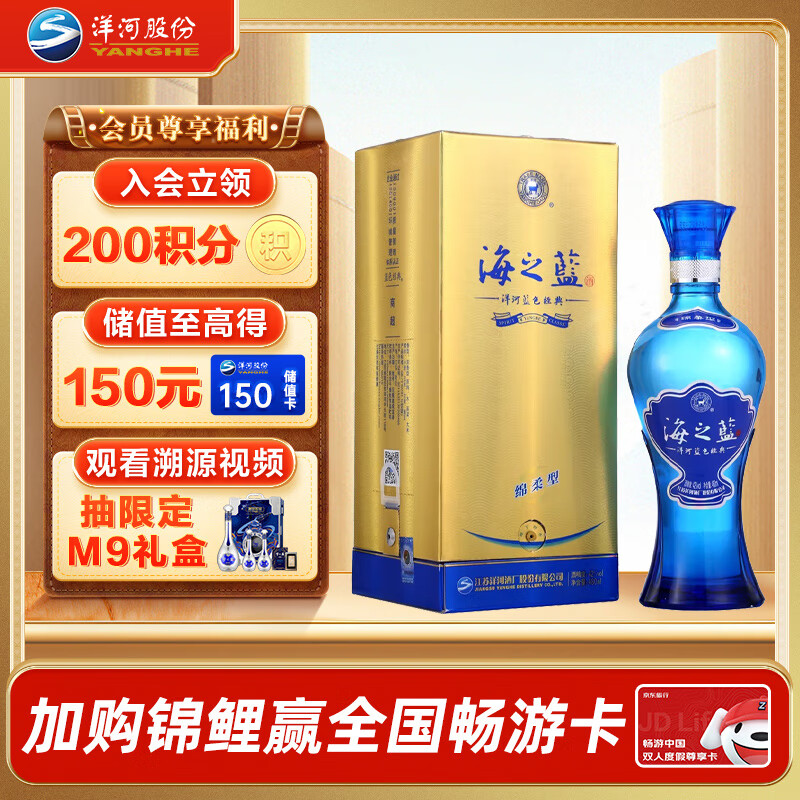 洋河 蓝色经典 海之蓝 42度 480ml 单瓶装 绵柔浓香型白酒价格:148.00元!