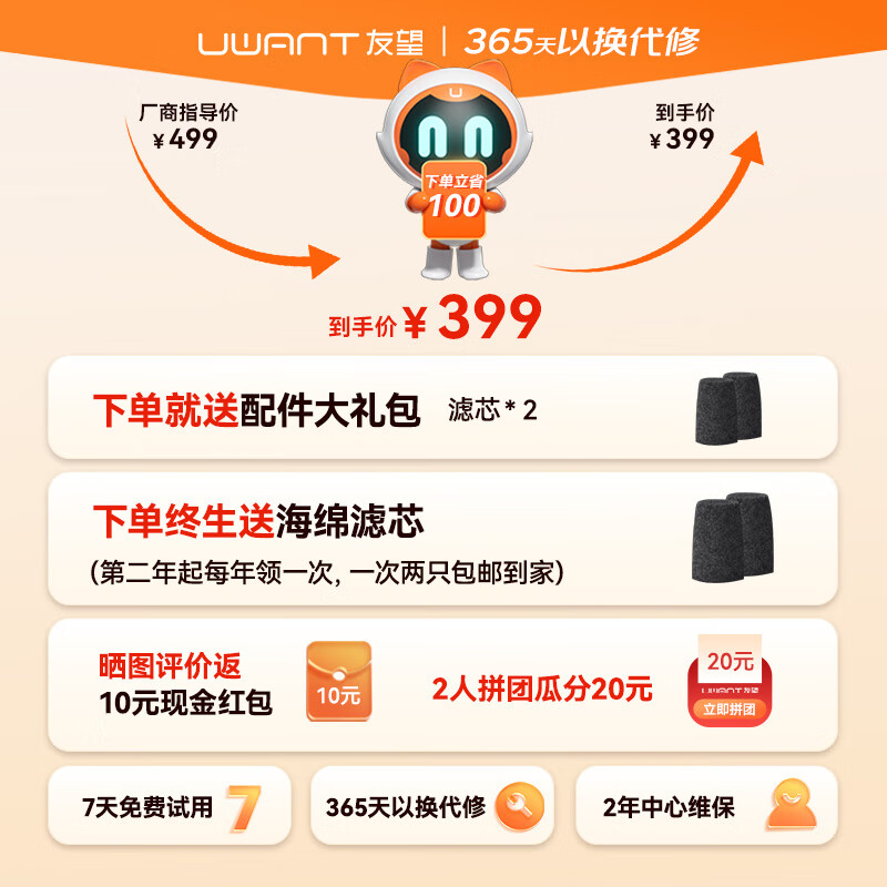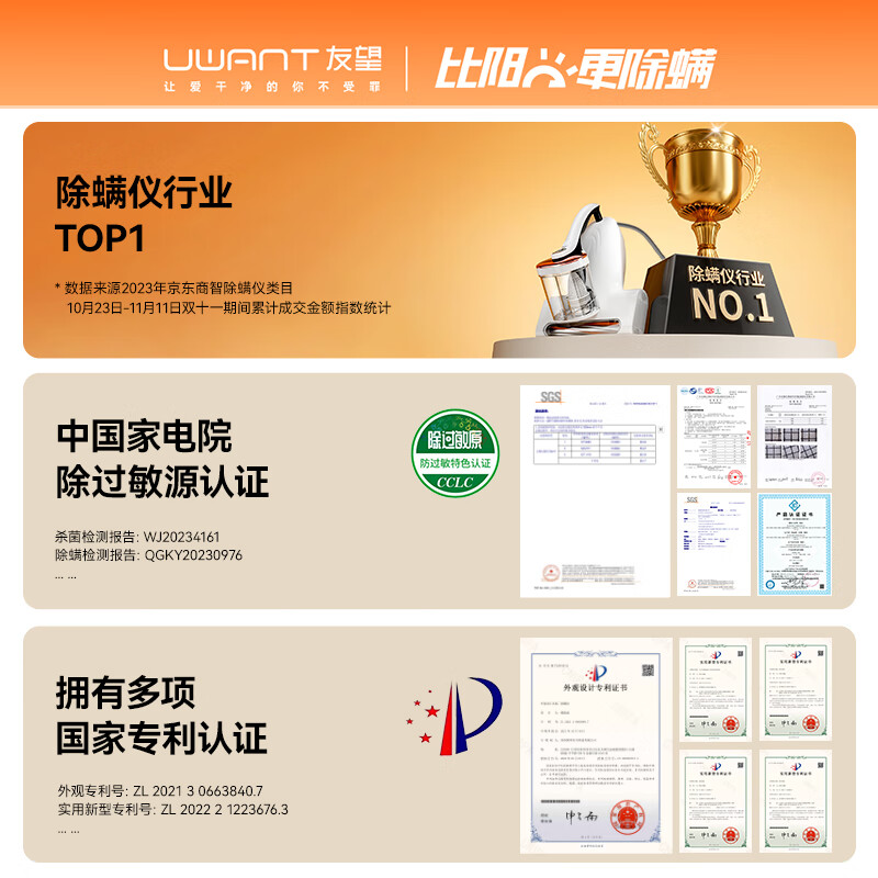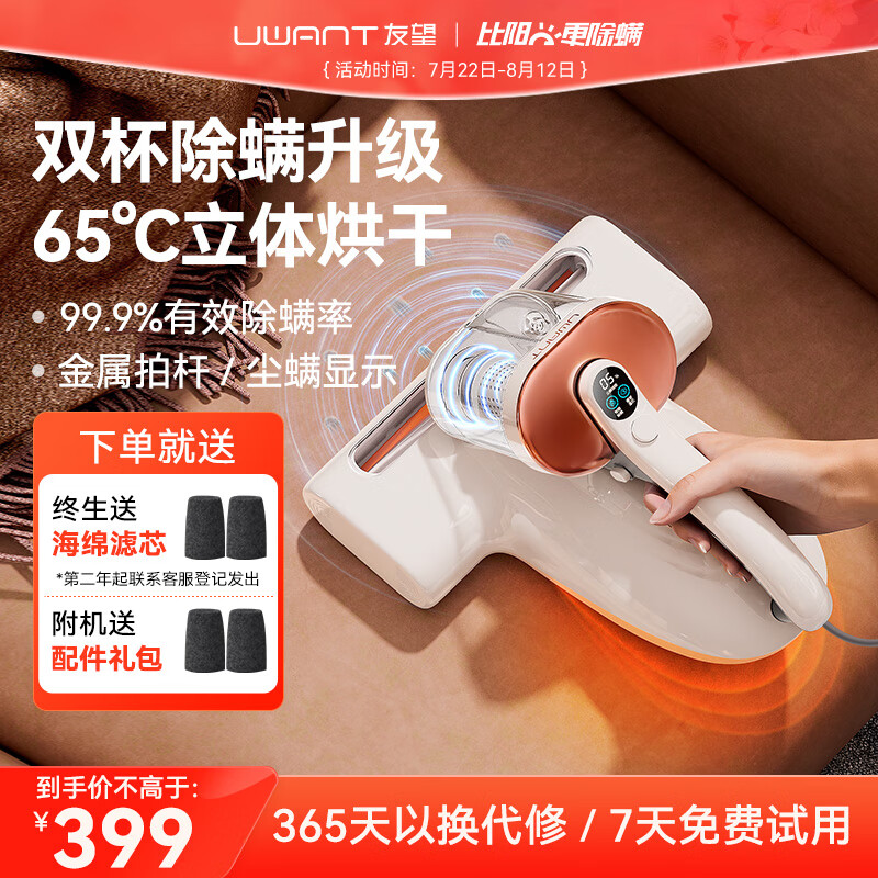 uwant友望除螨仪 升级吸力双杯尘螨分离 立体65℃热风烘干 家用床上除螨机去螨虫吸尘神器CM2306大白价格:399.00元!