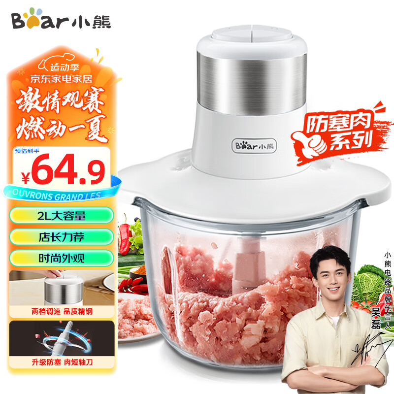 小熊(Bear)绞肉机家用 绞馅机 碎肉机 电动多功能料理搅拌机打肉机饺子肉馅蒜蓉机 搅肉机QSJ-C03A1 约2L价格:64.90元!