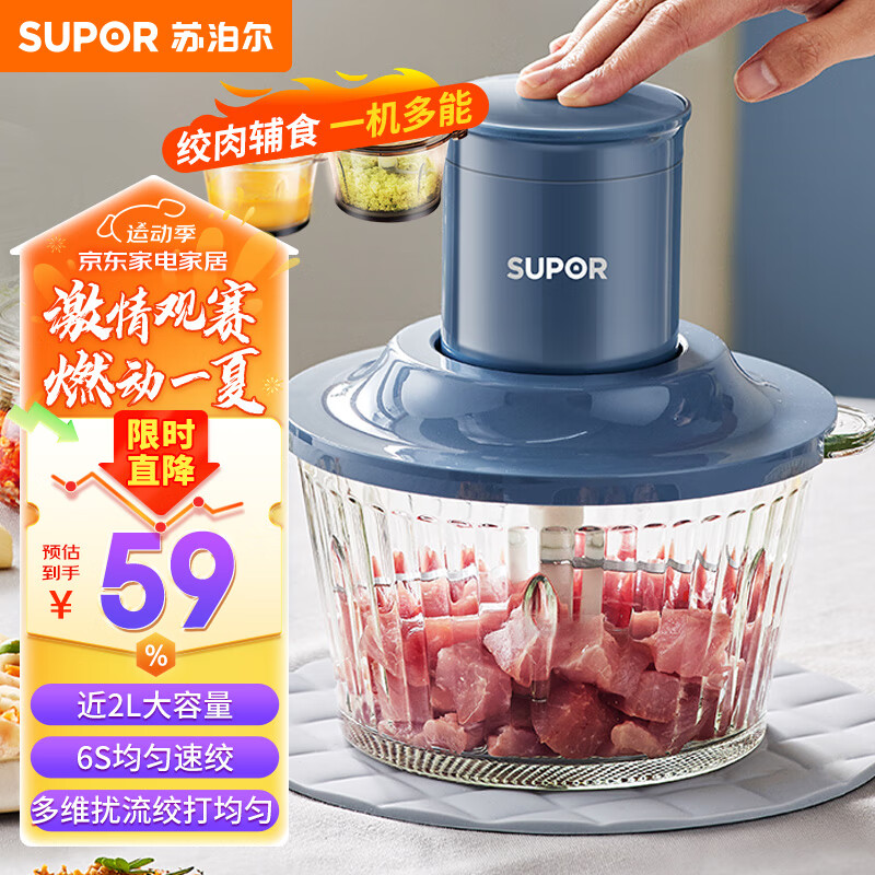 苏泊尔(SUPOR)绞肉机家用 电动多功能料理搅拌机绞肉绞馅搅菜婴儿辅食 小型碎肉打饺子肉馅绞肉机 JR35-B175价格:64.00元!