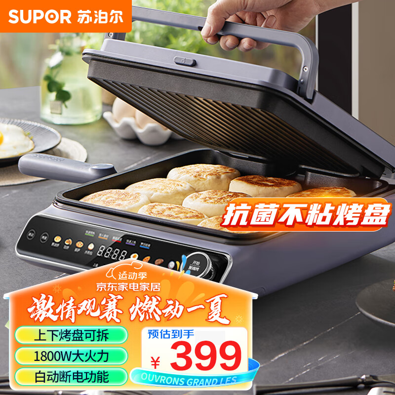 苏泊尔(SUPOR)电饼铛电饼档 多功能家用上下可拆双面加热早餐机加大加深 烤肉烙饼锅 聚嗨煎烤机 JC2828RQ865价格:399.00元!