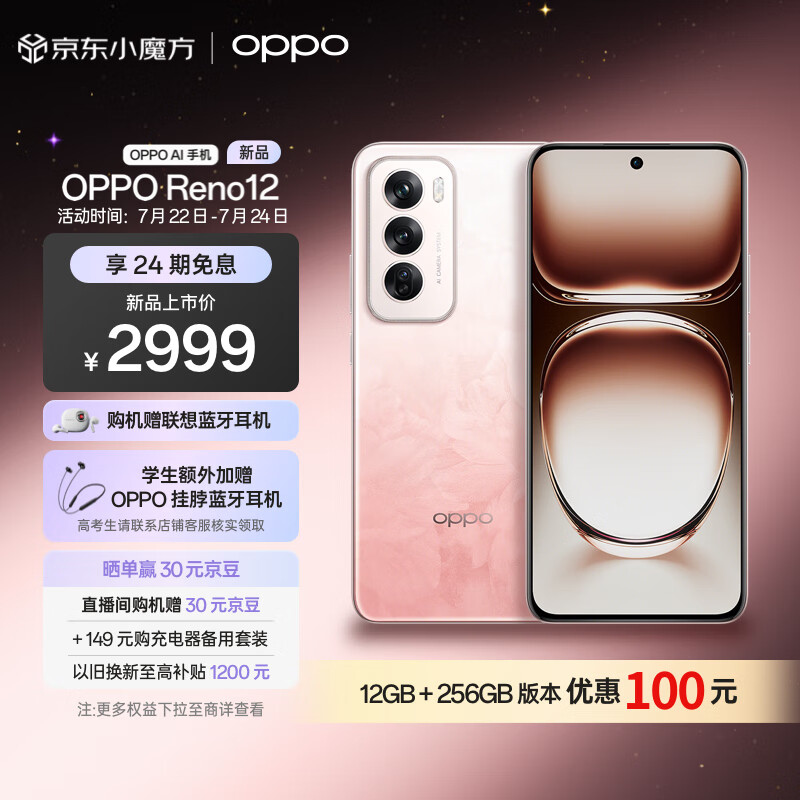 OPPO Reno12 超美小直屏 安卓Live图 天玑旗舰芯 16GB+256GB 柔和桃 游戏智能 新款 AI影像5G拍照手机价格:2999.00元!