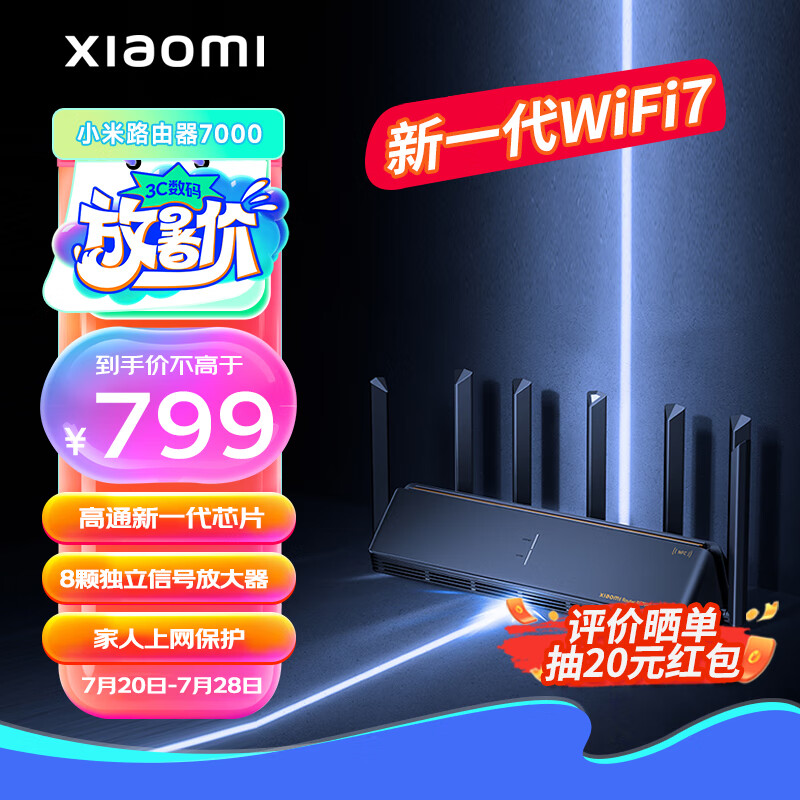 小米(MI) 路由器BE7000 WiFi7 高通新一代企业级芯片 8颗独立信号放大器 4个2.5G网口+USB 3.0价格:799.00元!