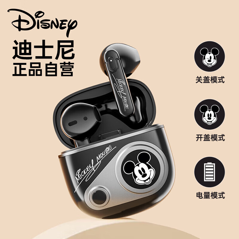 迪士尼(DISNEY)蓝牙耳机无线半入耳式 跑步运动音乐降噪电竞游戏低延迟Type-C 适用小米华为苹果QST8【黑色米奇】价格:159.00元!