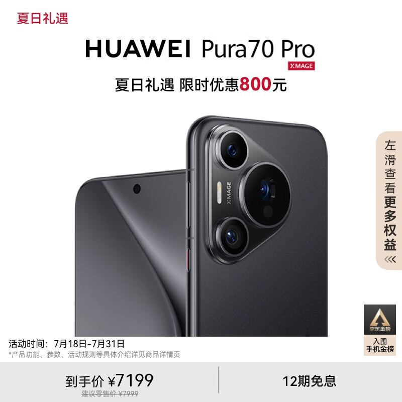 HUAWEI Pura 70 Pro 羽砂黑 12GB+1TB 超高速风驰闪拍 超聚光微距长焦 华为P70智能手机价格:7199.00元!