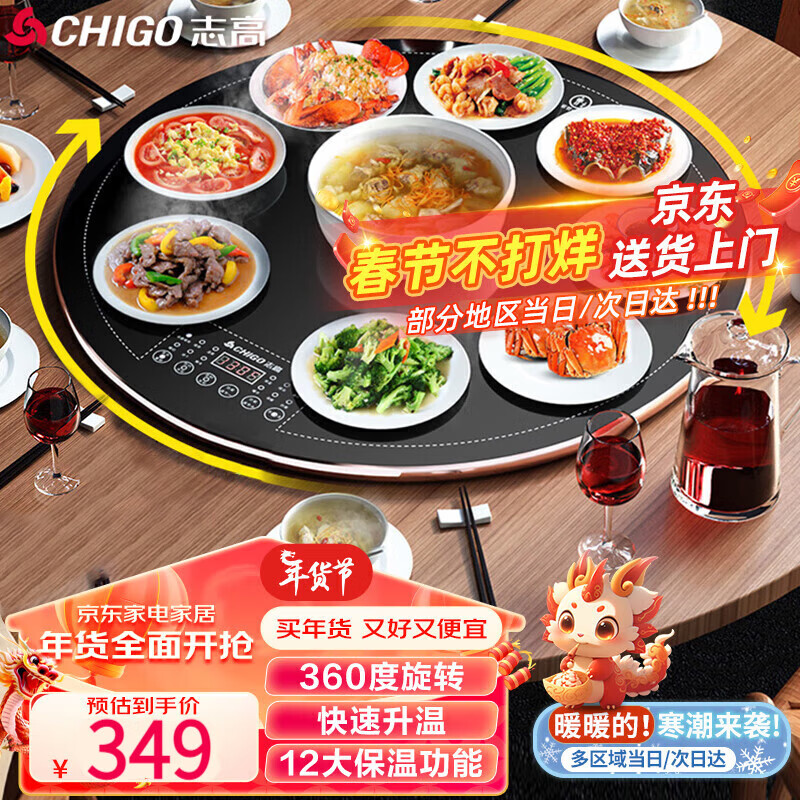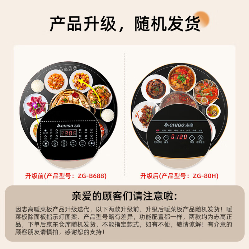 志高(CHIGO)暖菜板 饭菜保温板热菜板 加热桌垫菜板 可旋转智能预约12大功能80CM圆形大面板 ZG-B688价格:349.00元!