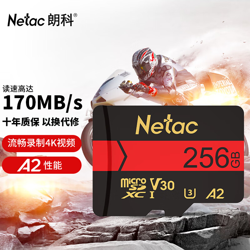 朗科(Netac)256GB TF(MicroSD)存储卡 U3 C10 A2 V30 4K 超高速版内存卡 读速170MB/s 写速100MB/s价格:159.00元!
