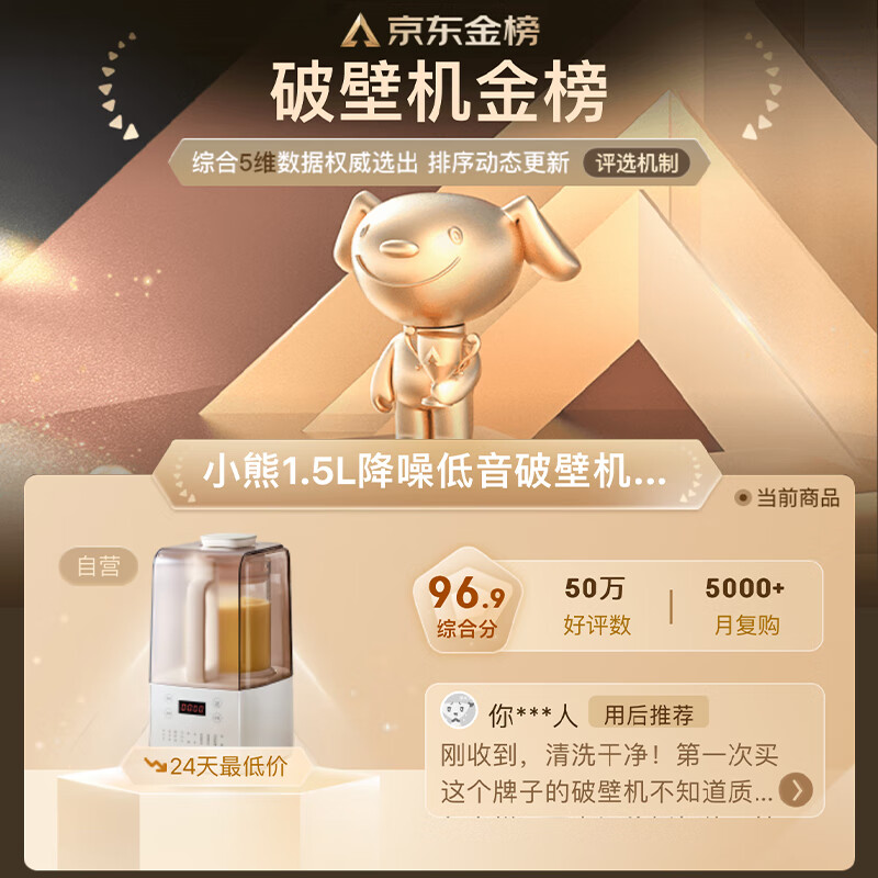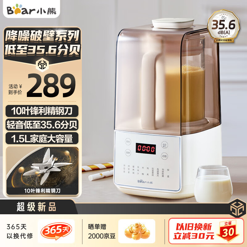 小熊(Bear)低音降噪破壁机 1.5L家用豆浆机 预约多功能全自动米糊机 五谷杂粮料理机榨汁机PBJ-F01G1价格:289.00元!