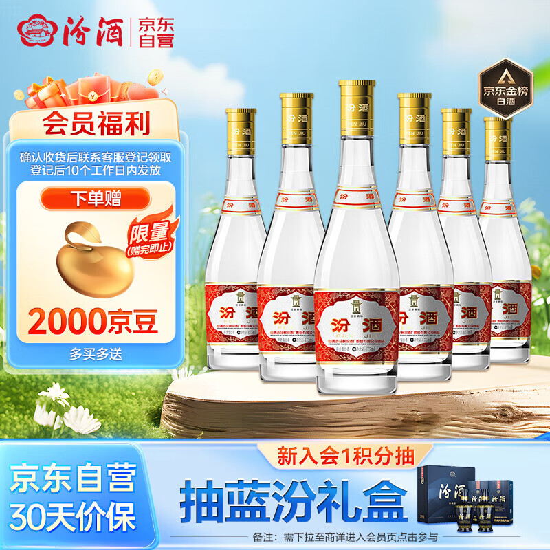 汾酒 黄盖玻汾清香型白酒53度475ml*6瓶整箱装口粮酒 新老款随机发货价格:292.60元!