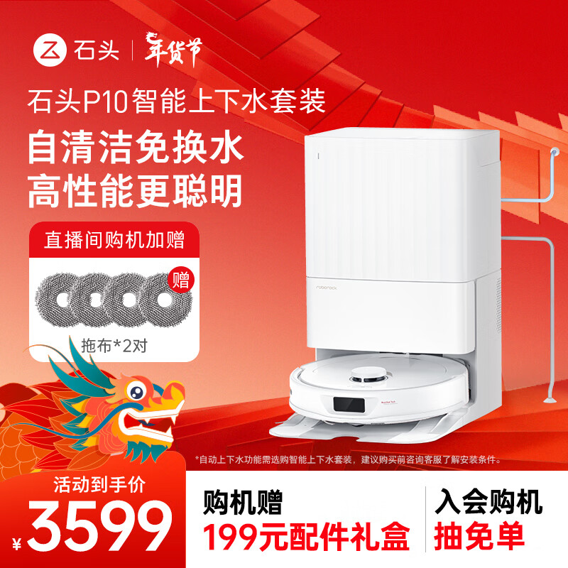 石头(roborock)扫地机器人扫拖一体 石头P10自动上下水扫拖洗烘一体机擦地机 自动清洗集尘烘干补水价格:3599.00元!