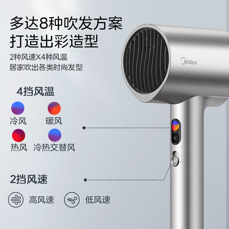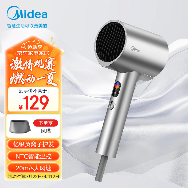 美的(Midea)亿级负离子电吹风 大功率 家用速干柔顺护发吹风筒 电吹风机 节日礼物FD205-星光银价格:129.00元!