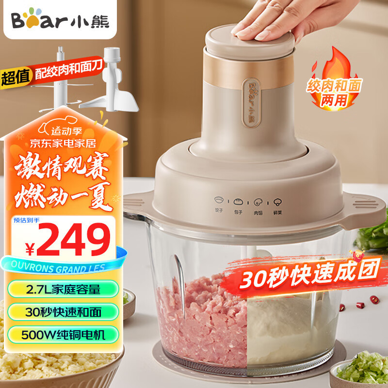 小熊(Bear)绞肉机家用 和面机 多功能揉面搅面绞馅机 打肉饺子肉馅碎肉机 搅肉机2.7L大容量 QSJ-P05A5价格:249.00元!
