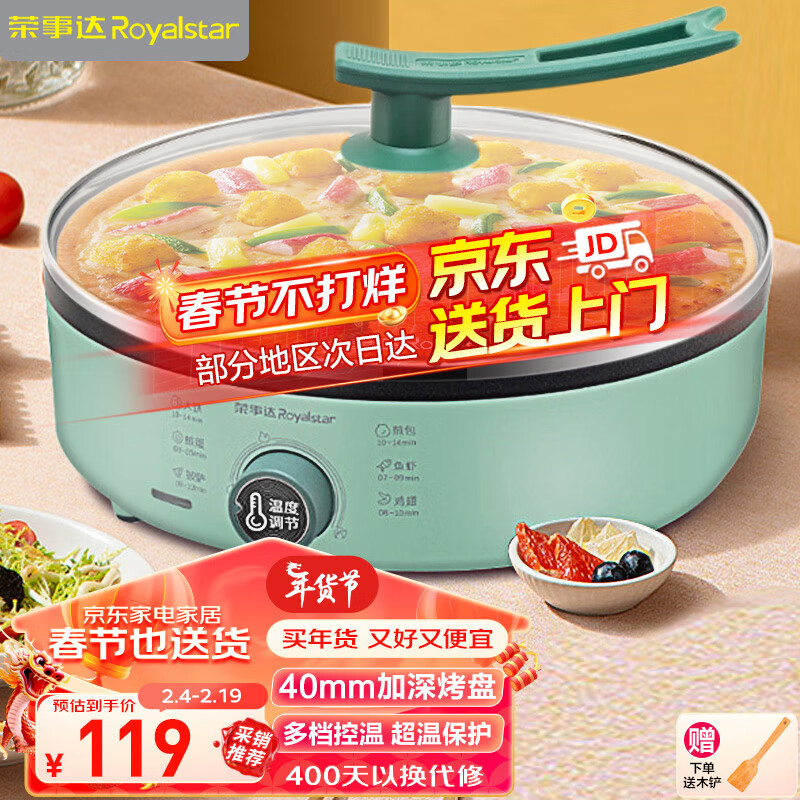 荣事达(Royalstar)电饼铛家用煎饼铛煎烤机烙饼锅早餐机40mm加深烤盘旋钮调控火力RBC-13B价格:119.00元!