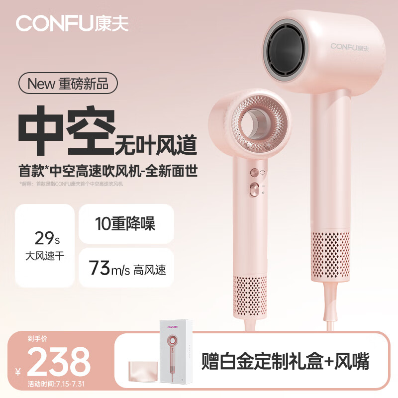 康夫(CONFU)高速电吹风机中空无叶七夕情人节生日送礼物送女友大功率大风力负离子护发吹风筒KF-F9粉价格:379.00元!