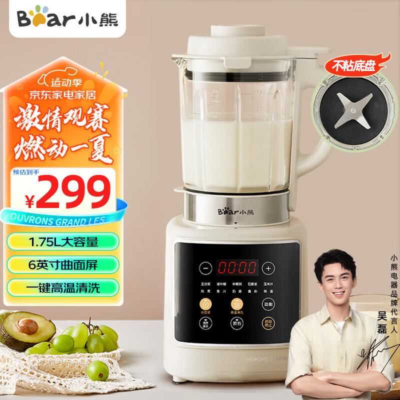 小熊(Bear)家用降噪破壁机 1.75L可预约加热豆浆机 多功能全自动米糊榨汁机 五谷杂粮料理早餐机PBJ-D10T1价格:299.00元!