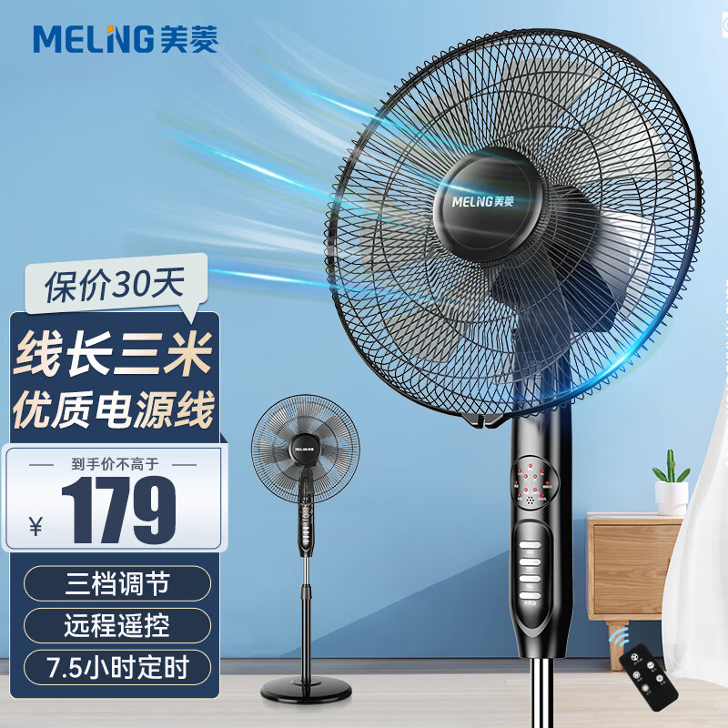 美菱MELNG 电风扇/落地扇 七叶大风量家用摇头风扇 可拆卸轻音遥控定时电扇MFS-40R价格:179.00元!