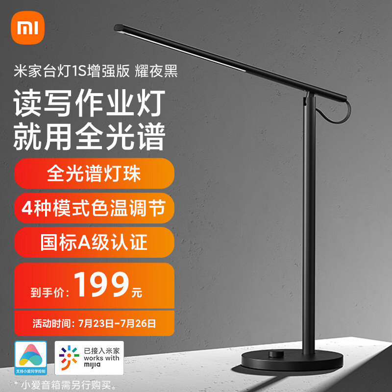米家台灯1S增强版耀夜黑 智能学习台灯学生儿童阅读写作业台灯小米价格:199.00元!