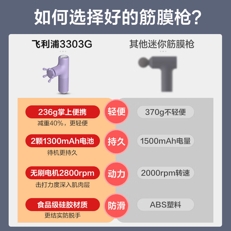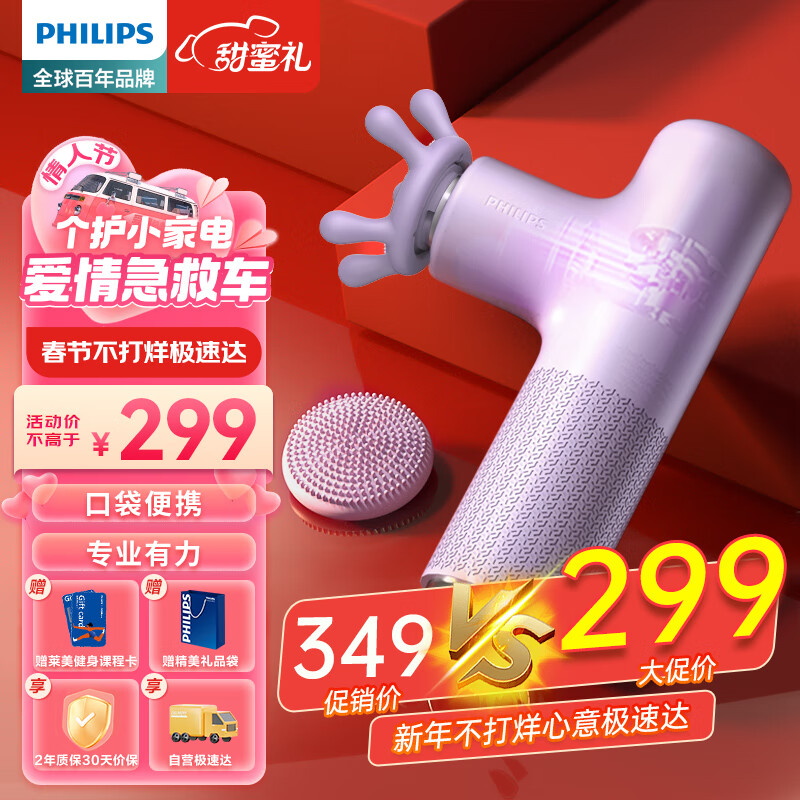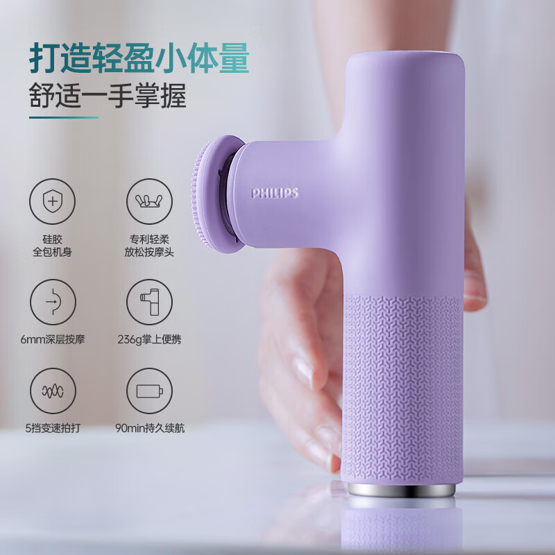 飞利浦筋膜枪按摩器肌肉按摩仪专利魔爪头部按摩器肩颈筋膜枪生日礼物送男女友爸妈节日情人节礼物3303G价格:329.00元!