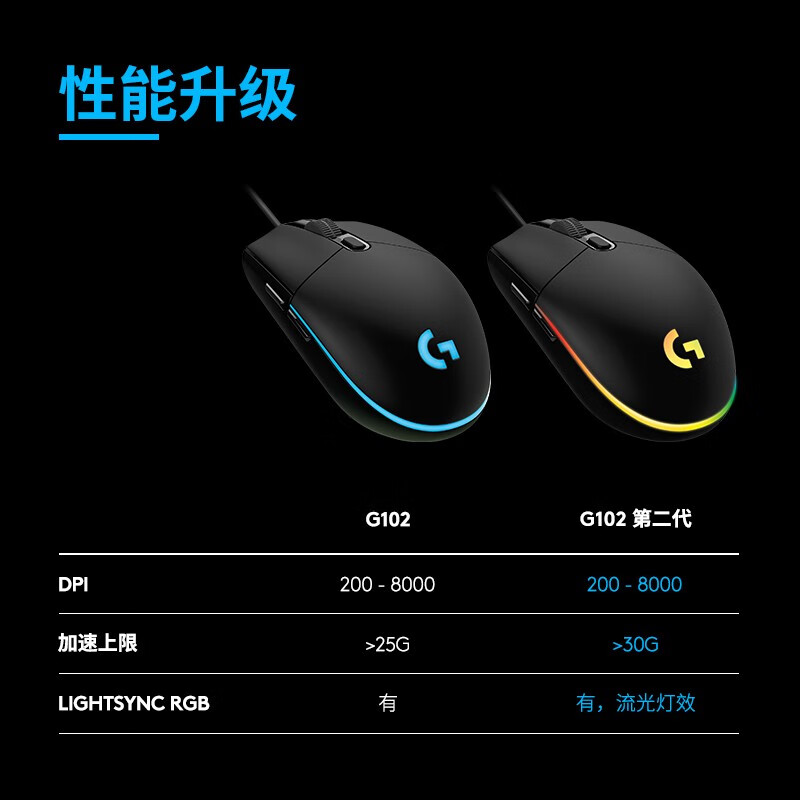 罗技(G)G102 LIGHTSYNC 游戏鼠标 淡紫色 RGB鼠标 轻量化设计 吃鸡鼠标 赛博朋克 200-8000DPI价格:109.00元!