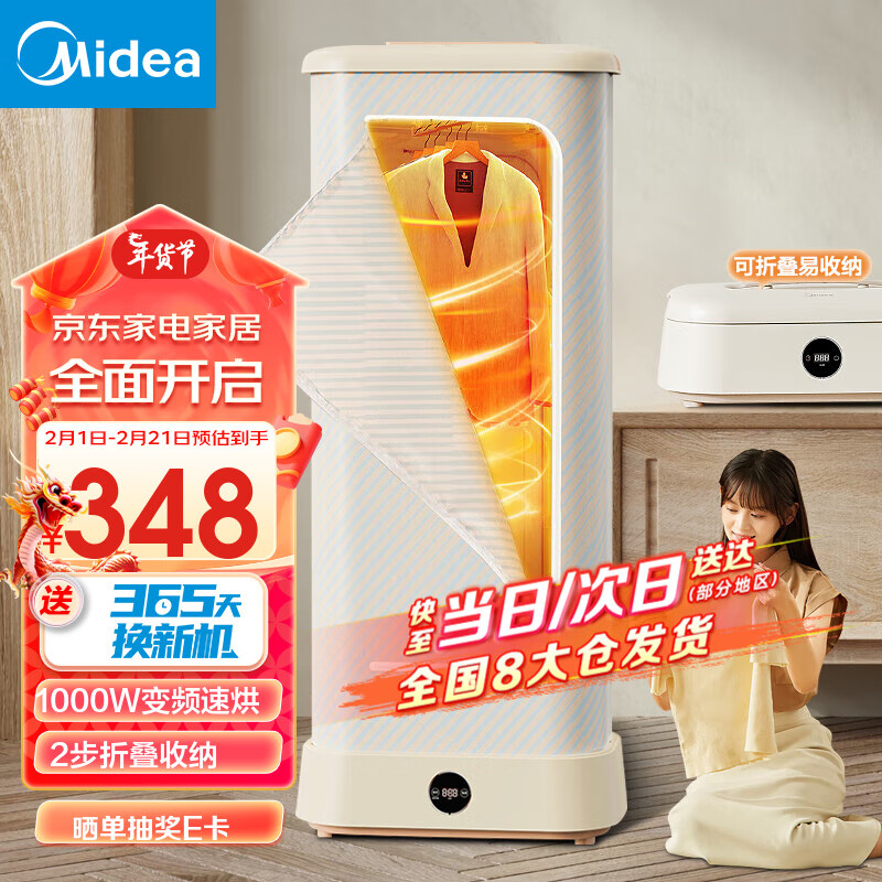 美的(Midea)可折叠干衣机烘干机家用折叠收纳便携小型风干机变频暖风布罩类婴儿烘干机烘干内衣便携烘干机 【巴氏+高温除菌】HBGD10D1价格:499.00元!