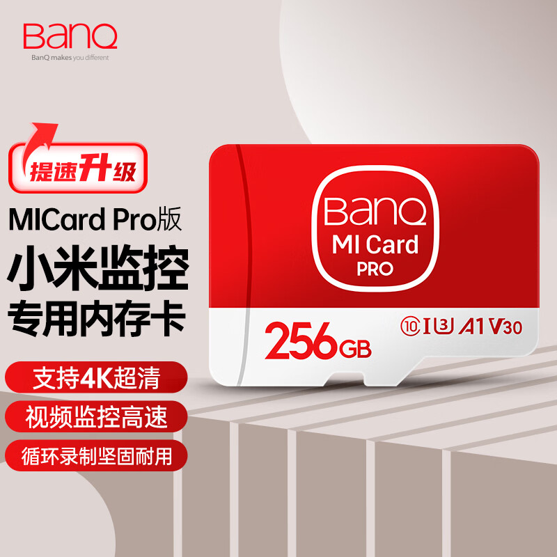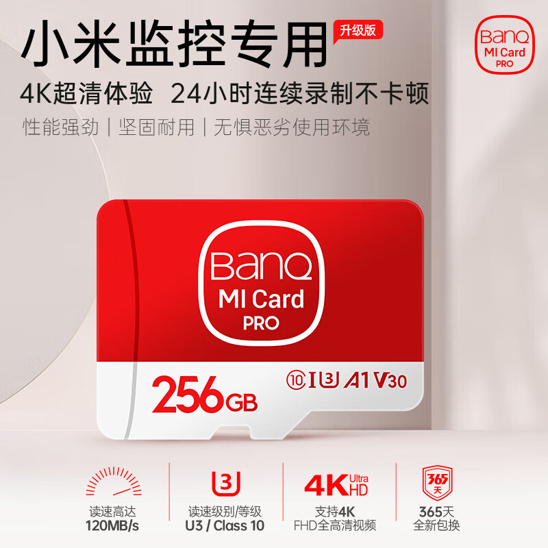 banq 256GB TF(MicroSD)存储卡 A1 U3 V30 4K 小米监控摄像头专用卡&行车记录仪内存卡高速耐用Pro版价格:156.60元!