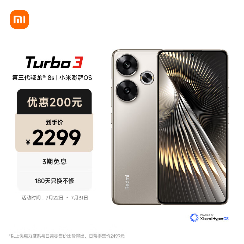 小米Redmi Turbo 3 第三代骁龙8s 小米澎湃OS 16+512 冰钛 AI功能 红米5G手机价格:2299.00元!