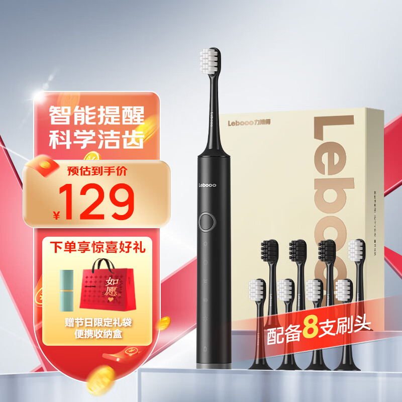 力博得(Lebooo)声波电动牙刷家用成人情侣节日生日礼物送男友/女友礼赠礼盒装 悦心2024款 8刷头 耀黑色价格:129.00元!