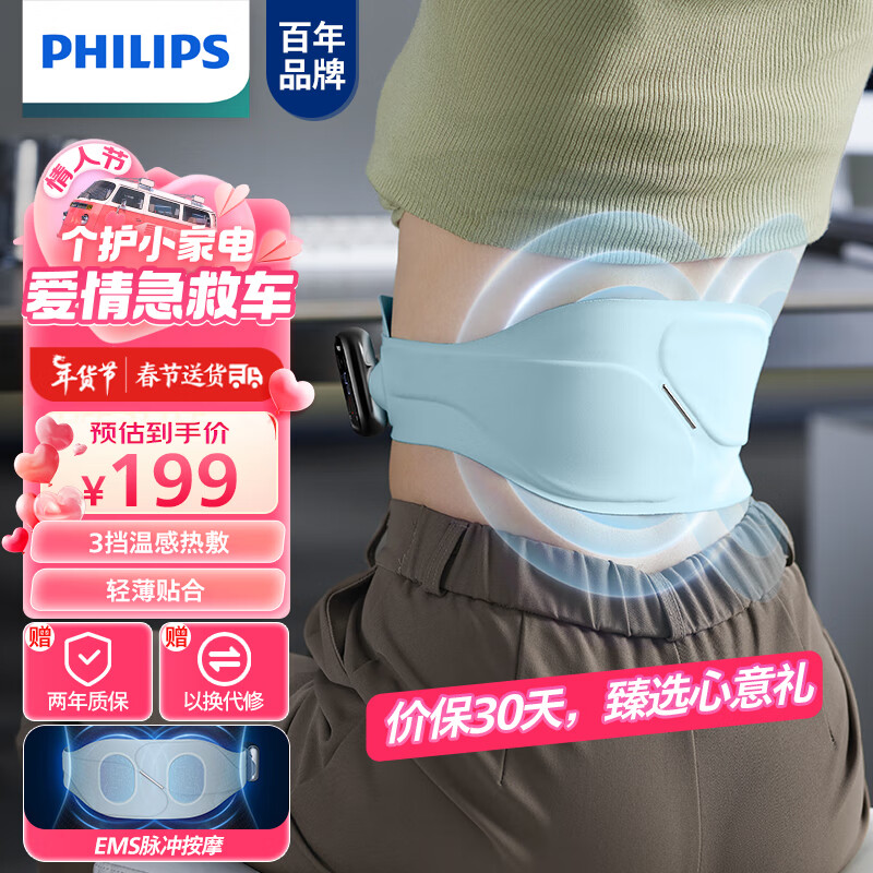 飞利浦(PHILIPS)腰部按摩器 无线轻薄贴肤热敷暖腹护腰仪 大姨妈痛经腰酸疼腰带实用送女友长辈生日礼物3302B价格:229.00元!