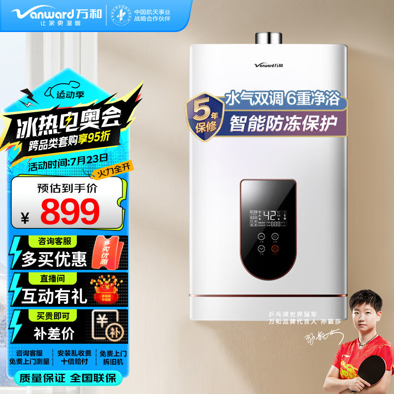 万和(Vanward)13升燃气热水器天然气感温水气双调精控恒温智能防冻保护6重健康浴JSQ25-520J13价格:899.00元!