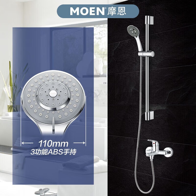 摩恩(MOEN)淋浴花洒套装卫浴多功能手持花洒喷头铜水龙头冷热配不锈钢滑竿价格:719.00元!