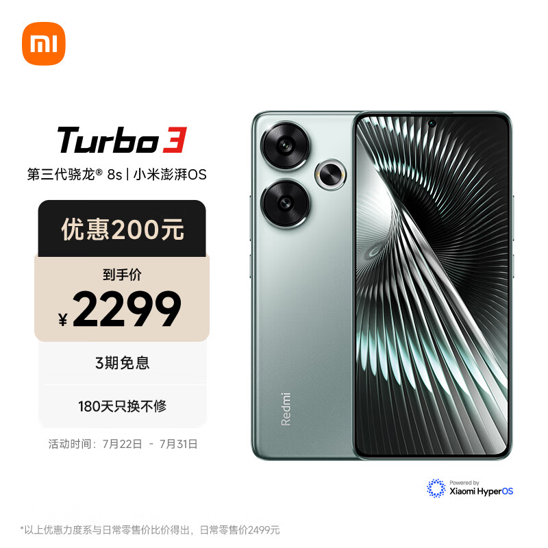 小米Redmi Turbo 3 第三代骁龙8s 小米澎湃OS 16+512 青刃 AI功能 红米5G手机价格:2299.00元!