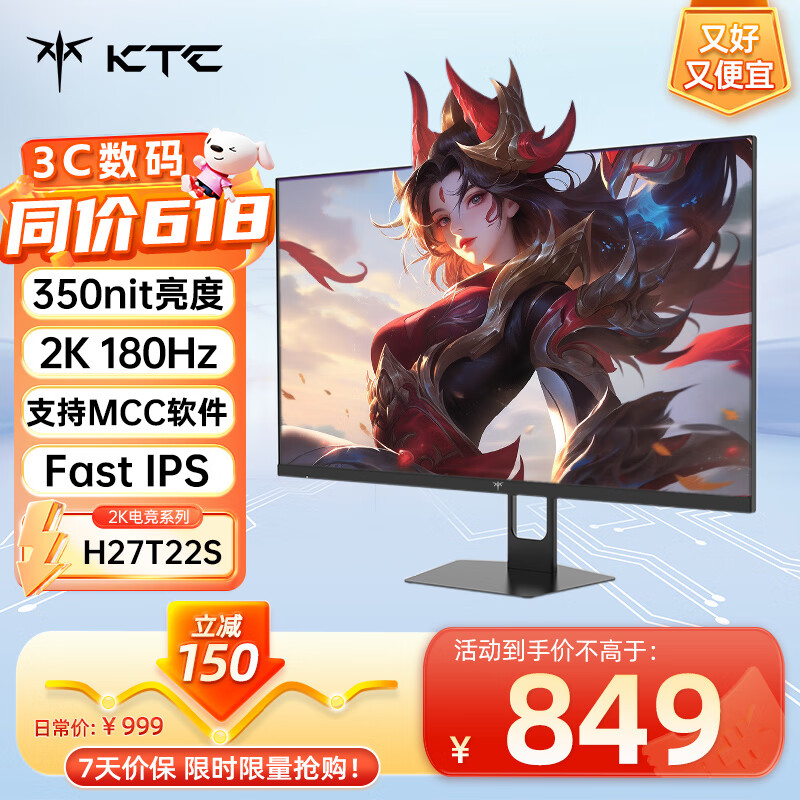 KTC 27英寸2K 180Hz高刷 1毫秒(GtG) 快响 FastIPS屏 外接游戏机笔记本电竞显示屏电脑显示器 H27T22S价格:1049.00元!