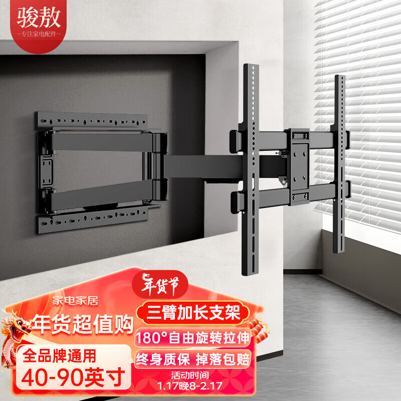 骏敖 电视支架壁挂架可伸缩旋转电视通用适用于小米雷鸟创维荣耀智慧屏40-90英寸壁挂内嵌墙架子价格:493.00元!