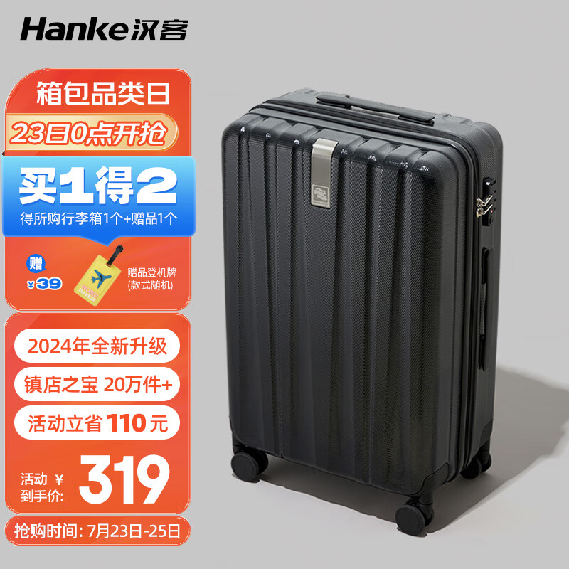 汉客行李箱男拉杆箱女登机旅行箱20英寸墨玉黑密码箱镇店之宝再次升级价格:429.00元!