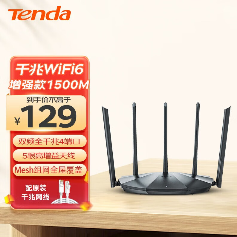 Tenda腾达AX2 Pro WiFi6双千兆无线路由器 5G双频 1500M无线速率 Mesh组网 穿墙游戏路由 信号增强款价格:169.00元!