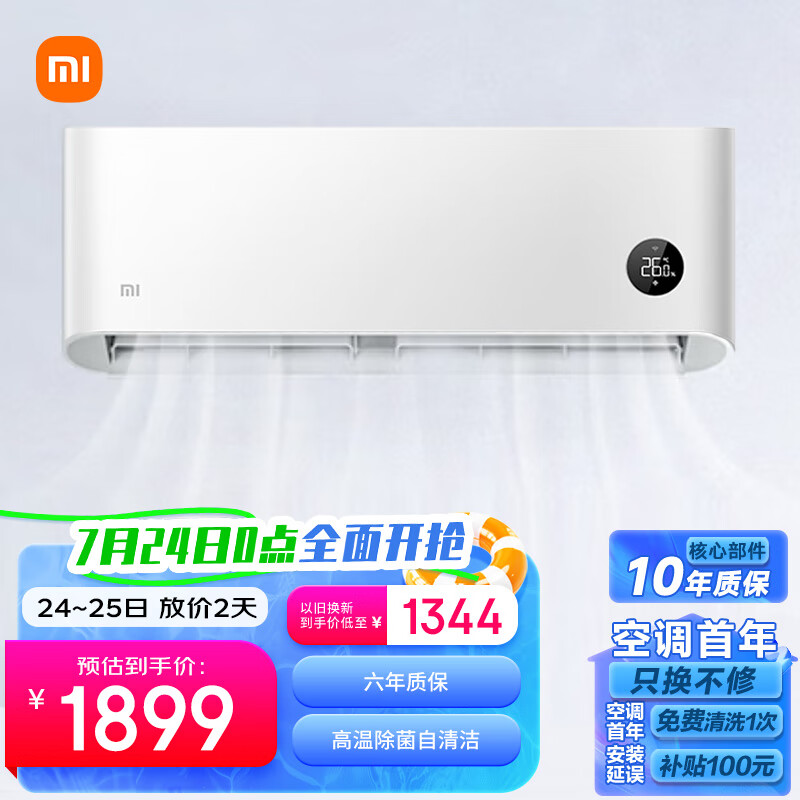 小米大1匹 新一级能效 变频冷暖 智能自清洁 巨省电 壁挂式卧室空调挂机 KFR-26GW/V1A1价格:1899.00元!