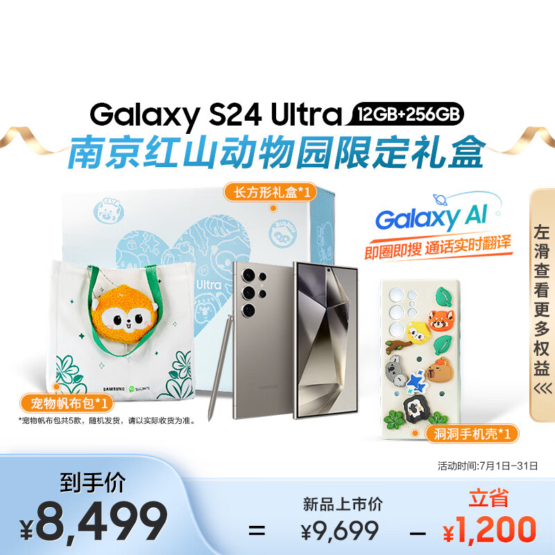 三星(SAMSUNG)Galaxy S24 Ultra AI手机 第三代骁龙8 游戏手机 南京红山动物园限定礼盒 12GB+256GB 钛灰价格:8499.00元!