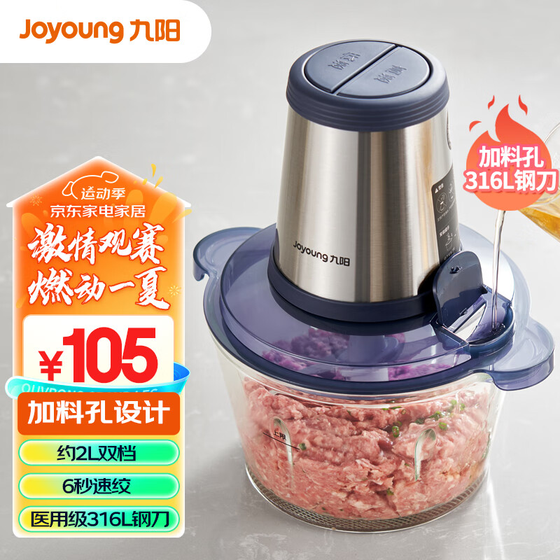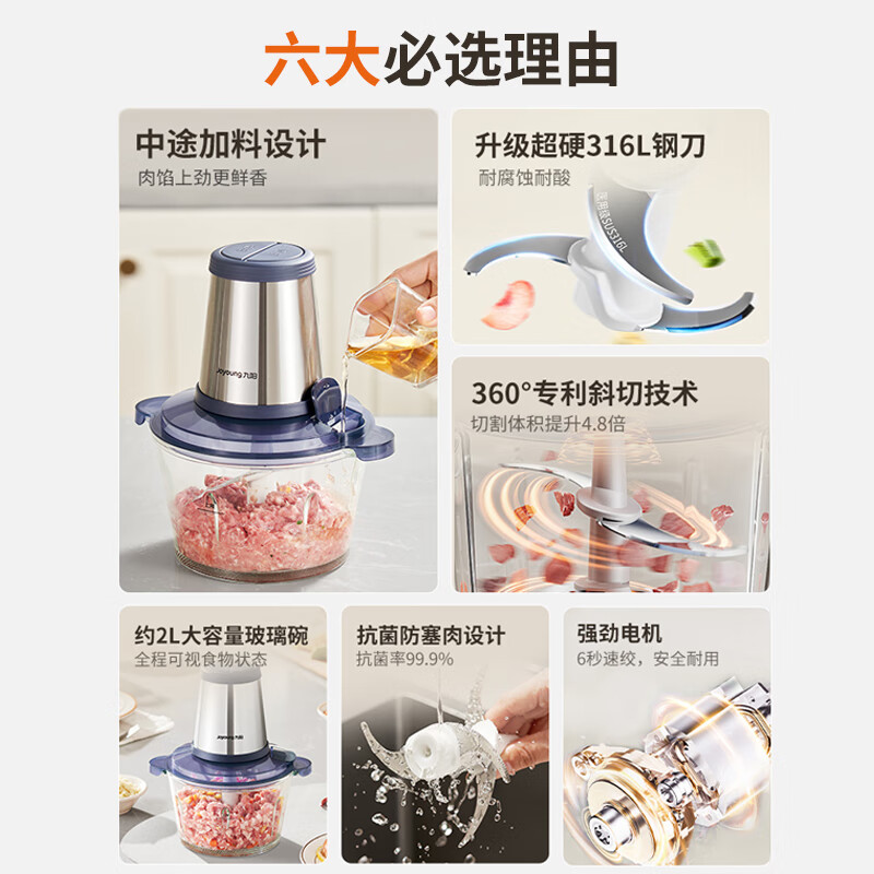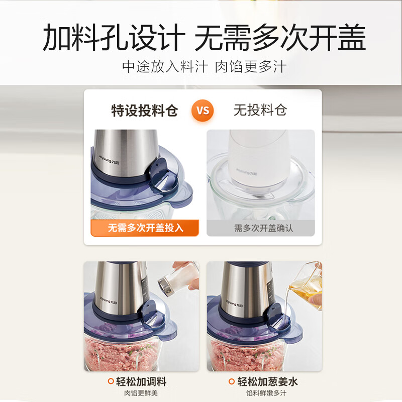 九阳绞肉机家用 绞馅机 碎肉机 电动多功能料理饺子肉馅蒜蓉机不锈钢 加料孔设计搅肉机S18-LA329 2L价格:105.00元!