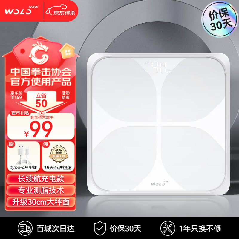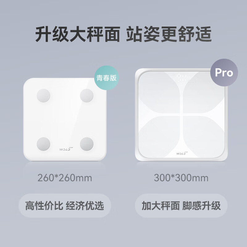 沃乐WOLO智能体脂秤Pro【大秤面】电子体重秤家用高精准人体健康脂肪称可连APP 实用生日礼物价格:149.00元!