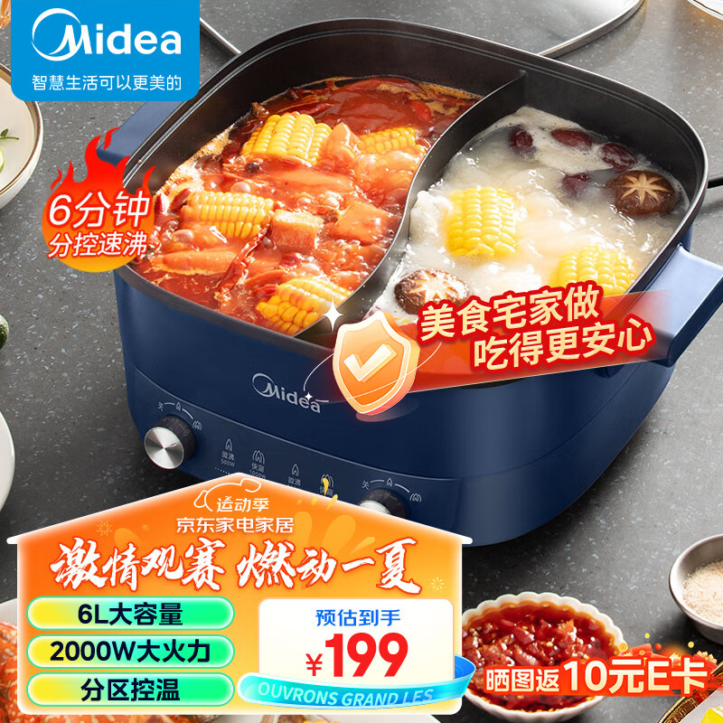 美的(Midea)电火锅 鸳鸯锅 火锅专用锅 电煮锅多功能锅6分钟双控速沸家用一体式电热锅6L多用途锅MC-HGC303012价格:199.00元!