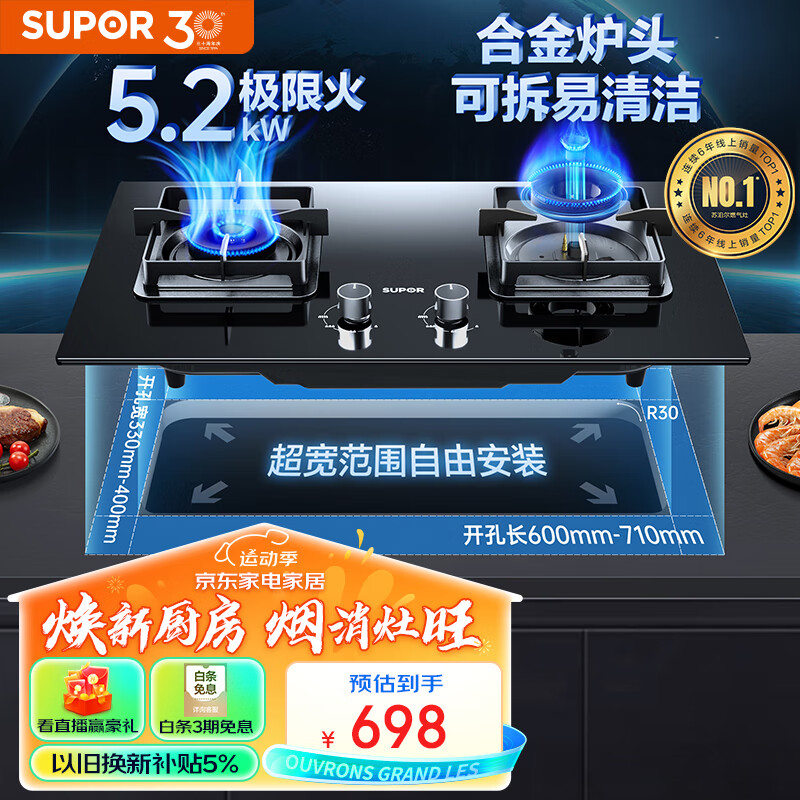 苏泊尔(SUPOR)燃气灶煤气灶双灶家用 液化气双灶具5.2kW大火力 可调节底盘 63%热效率 230°宽域控火 DB28液价格:698.00元!