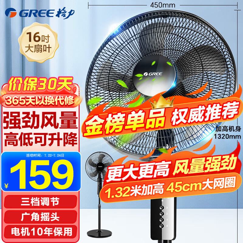 格力(GREE) 电风扇家用节能落地扇学生立式大风量客厅宿舍机械五叶扇 FD-4012-WG 黑色价格:158.00元!