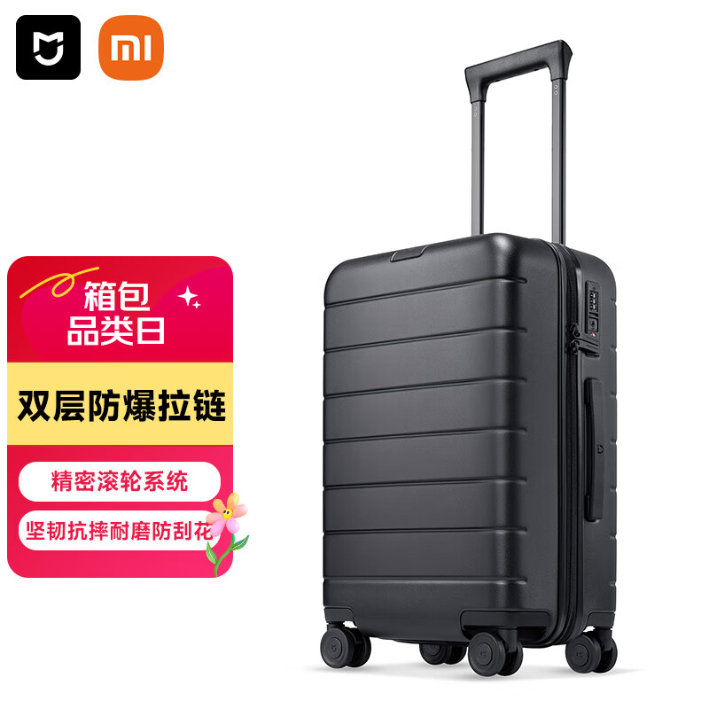 米家小米行李箱20英寸拉杆箱小型可登机箱PC旅行箱男女密码皮箱子黑色价格:309.00元!
