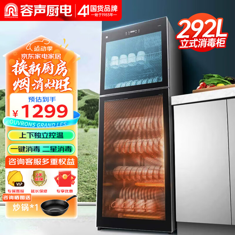 容声(RONGSHENG)消毒柜家用 立式消毒碗柜 大容量 商用消毒柜 双门台式餐具厨房碗筷消毒柜380-RQ230(A)价格:1299.00元!