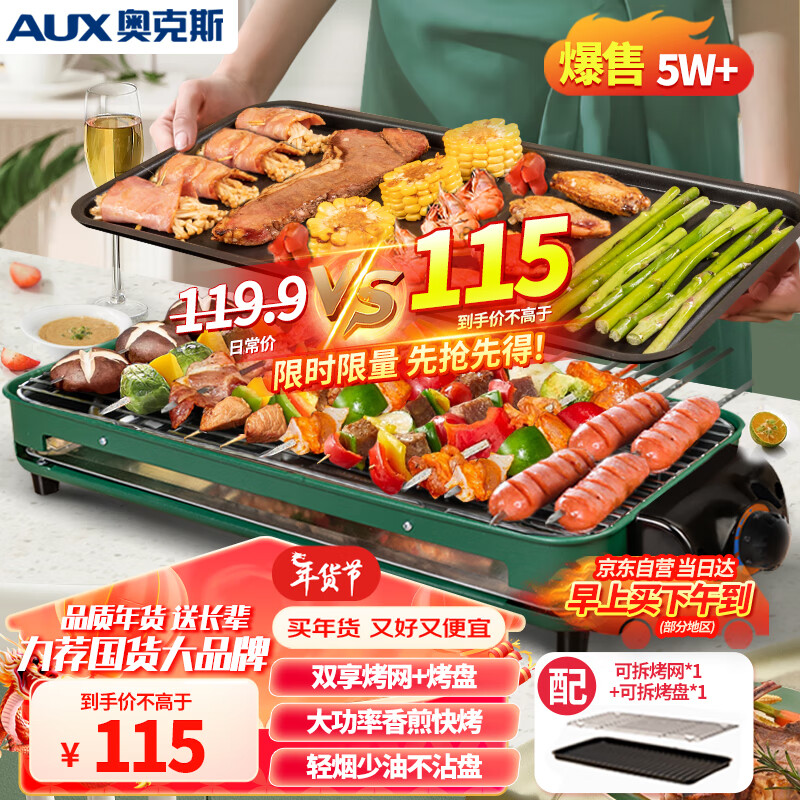 奥克斯(AUX)电烧烤炉 电烤盘家用无烟电烤架烧烤架烤肉机电烤炉烤肉锅烤串机 LA-KP03-C价格:115.00元!