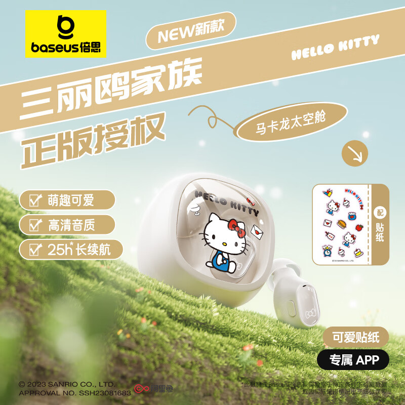 倍思WM02真无线蓝牙耳机 【三丽鸥正版授权】佩戴舒适音乐通话生日礼物适用苹果小米华为 凯蒂猫 白价格:119.00元!