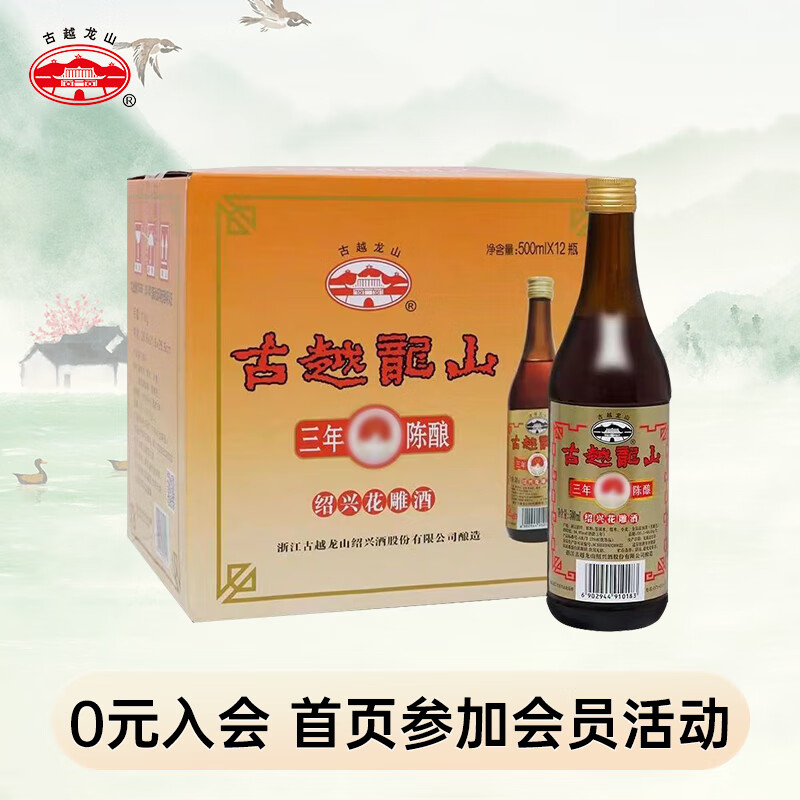 古越龙山 彩包花雕三年 传统型半干 绍兴 黄酒 500ml*12瓶 整箱装价格:97.00元!