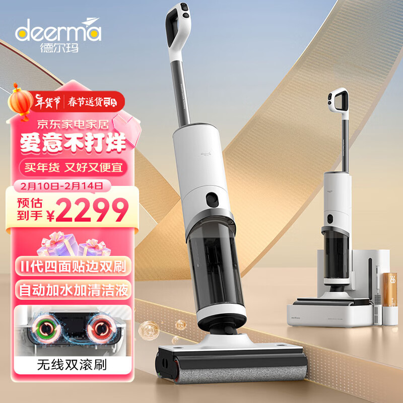 德尔玛(Deerma)P50PRO 无线智能自动双舱双轴洗地机 家用吸拖一体自动加水双滚刷电解水除菌 基站热风烘干价格:2499.00元!