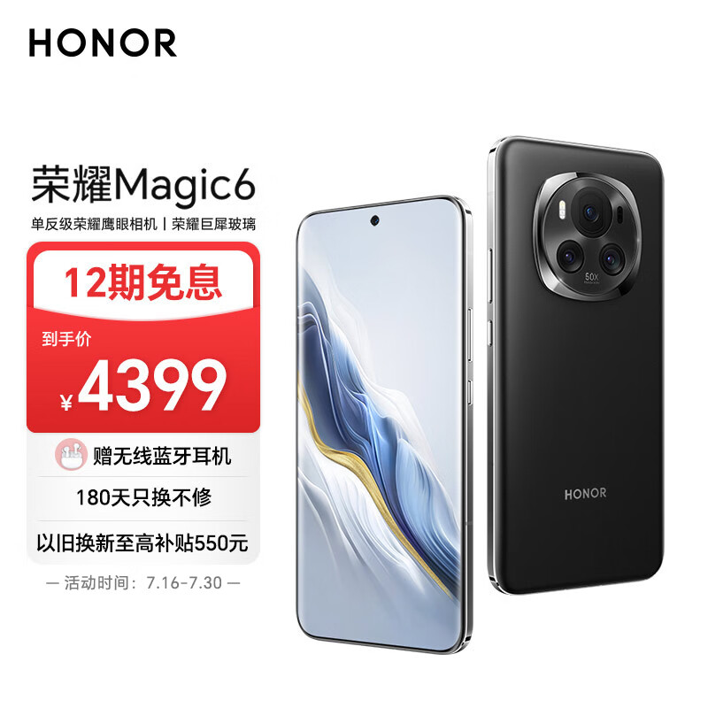 荣耀Magic6 单反级荣耀鹰眼相机 荣耀巨犀玻璃 第三代骁龙8芯片 16GB+256GB 绒黑色 5G AI手机价格:4399.00元!